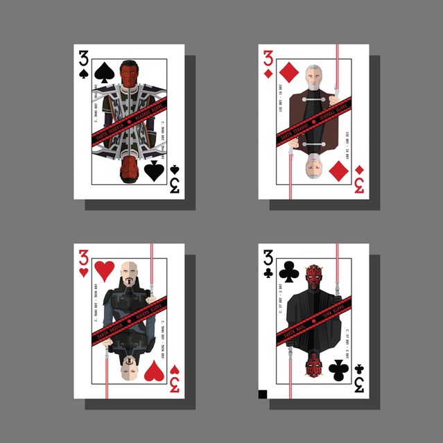 看见个好玩的,https://www.kickstarter.com/projects/1333538638/playing-cards-the-dark-lords-of-the-sith/posts/223009 粉丝做的一套西斯扑克牌(不过大概是黑暗面使用者扑克牌吧)每张都是不同的人,画得蛮可爱的!我这里就随便贴三张,请点进原地址看