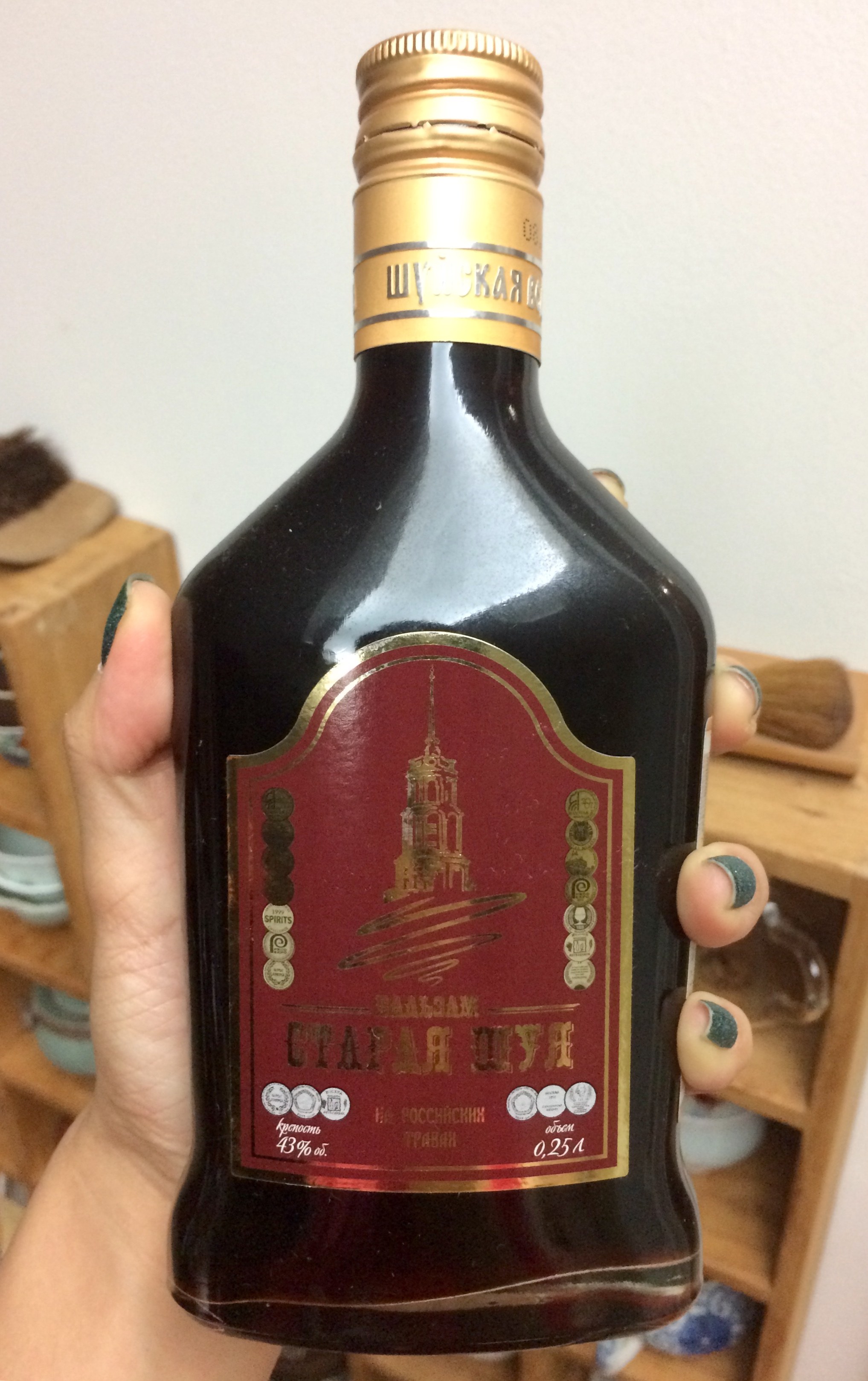 俄国一种草药酒都是我辛辛苦苦喝的2019年8月17日2019年8月17日标签:烈酒草药酒 俄国一种草药酒。Старая Шуя,Staraya Shuya 还不错,味道挺正常的。 Related posts:快乐66 一种德国的66度苦艾酒。亚美尼亚的国酒,阿拉拉特牌白兰地 发表回复 取消回复您的电子邮箱地址不会被公开。 必填项已用*标注评论 * 显示名称 * 电子邮箱地址 * 网站地址 在此浏览器中保存我的显示名称、邮箱地址和网站地址,以便下次评论时使用。